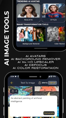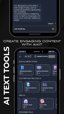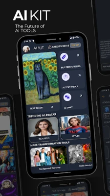 Welcome to AI Kit, your comprehensive solution for exploring the infinite possibilities Artificial Intelligence offers. Whether you're an artist, a graphic designer, a content creator, a social media influencer, or simply someone who enjoys the magic of AI, AI Kit is specifically designed to cater to your creative needs. Our powerful, user-friendly app empowers you to generate stunning AI images, create bespoke AI avatars, transform existing photos with advanced AI techniques, and generate compelling AI text content—providing a one-stop platform for all your AI-driven creative endeavours.