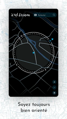 "As the crow flies" is a minimalist navigation app originally designed for adventurous cyclists wanting to keep an unobtrusive eye on their destination, but it's also well suited for pedestrians wanting to get through their city without having a route imposed on them.