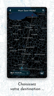 1. Choose a destination 2. Let the compass guide you 3. Switch to minimalist mode to save your data and your battery