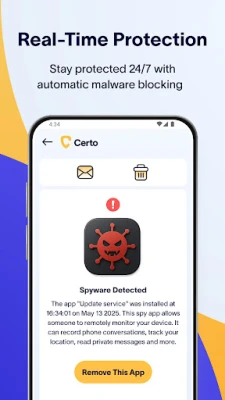 Safeguard your device from spyware, viruses, and apps that compromise your privacy. With advanced threat detection, Certo ensures you're always protected — even as new risks emerge.