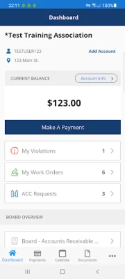 This APP allows Board Members and Owners to access online Association website functions via a convenient mobile APP instead of having to log in via a web browser. Owners may pay assessments, look up documents, retrieve forms, and check their accounts. Additionally, Board Members may approve invoices (if applicable), see Association financial records, and monitor Association reports.