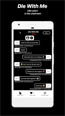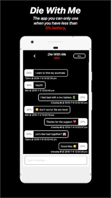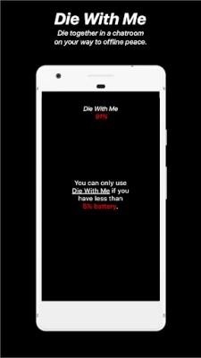 Enter the chatroom full of people with a low battery. Die together in a chatroom on your way to offline peace. #diewithme.