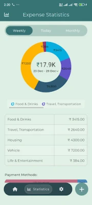 * Note your daily expenses * Categorise each expenses based on their type * Categorise each expenses based on their Payment method * Create monthly budget, assigning shares to different type of spendings * Get weekly and monthly expense statistics for current and past weeks/months * Extract Excel/PDF report of the expenses
