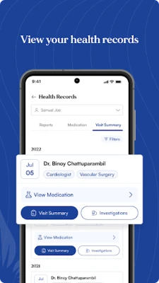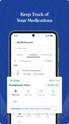 - Add and keep track of your medications, reports, visit summary and discharge summary