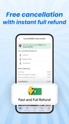 ● Get free cancellation on Tatkal ticket booking through the ixigo train app.