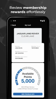 The Jaguar Land Rover Clear Lake app allows you to view and track your participation in the dealership's loyalty program, as well as the service history of your vehicle. The dealership is located In Friendswood TX. Additionally, as a mobile app user, you are eligible for exclusive deals on services that are not available to other customers.