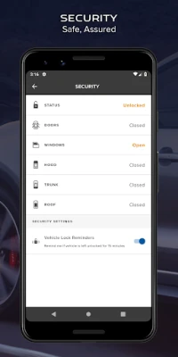 - Check on your vehicle security status and lock/unlock your vehicle if required