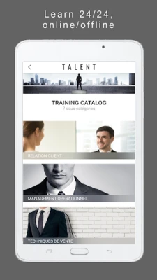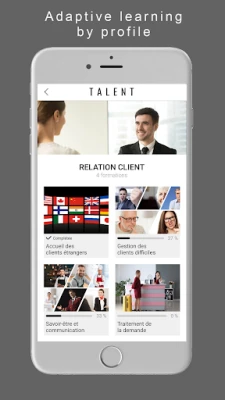 The TALENT application is based on the best mobile technologies. Our pedagogical engineers and multimedia designers create engaging learner-friendly content available 24/24 on your favorite media.
