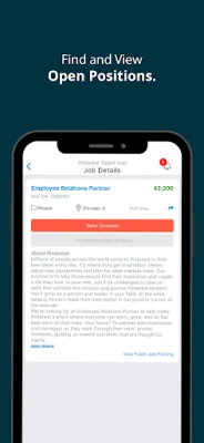 Talent Hub allows you to stay in the loop about new opportunities at Pinterest. Easily apply, refer friends or share across social media accounts, and track the status of your referrals and applications every step of the way