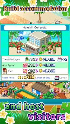 Build accommodation for your guests and get those tourists coming! Make the environment even nicer and discover great travel packages to give visitors the best vacation possible.