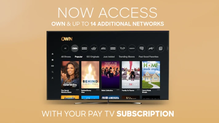 Catch up with your favorite OWN shows anytime, anywhere with the all-new Watch OWN app - and now get access to up to 14 additional networks including TLC, HGTV, ID and more - all in one app. It’s FREE with your pay TV subscription.